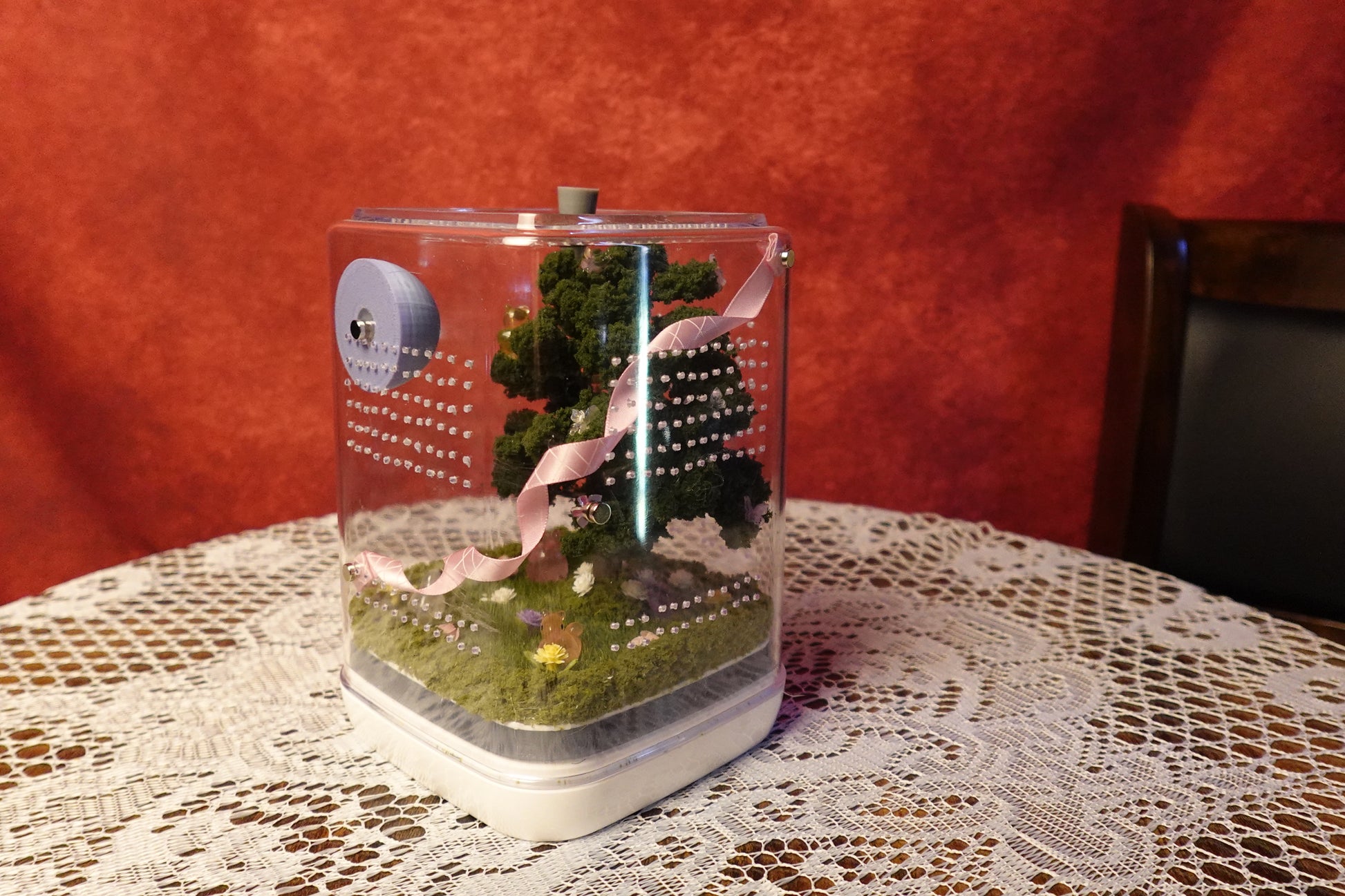Add a playful spark to your room with this charming handcrafted jumping spider terrarium! Sized at 7" x 5", it offers plenty of space for your tiny jumper to roam and show off its lively personality. Designed to delight arachnid fans and nature lovers alike, it’s sure to be a captivating conversation piece crafted with care by Sweet Sara Bee Creations and available exclusively at Crooked Horse Trading Co.